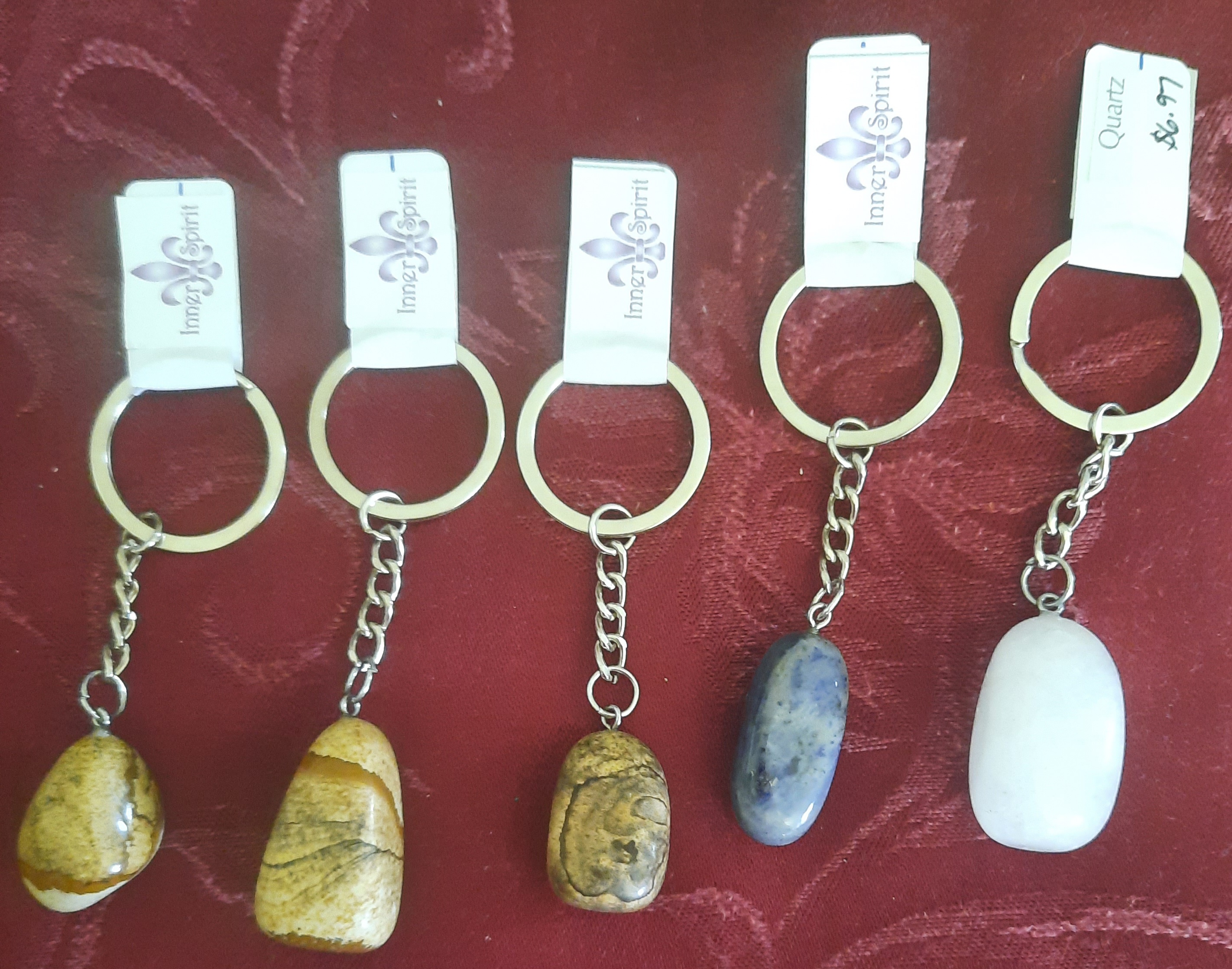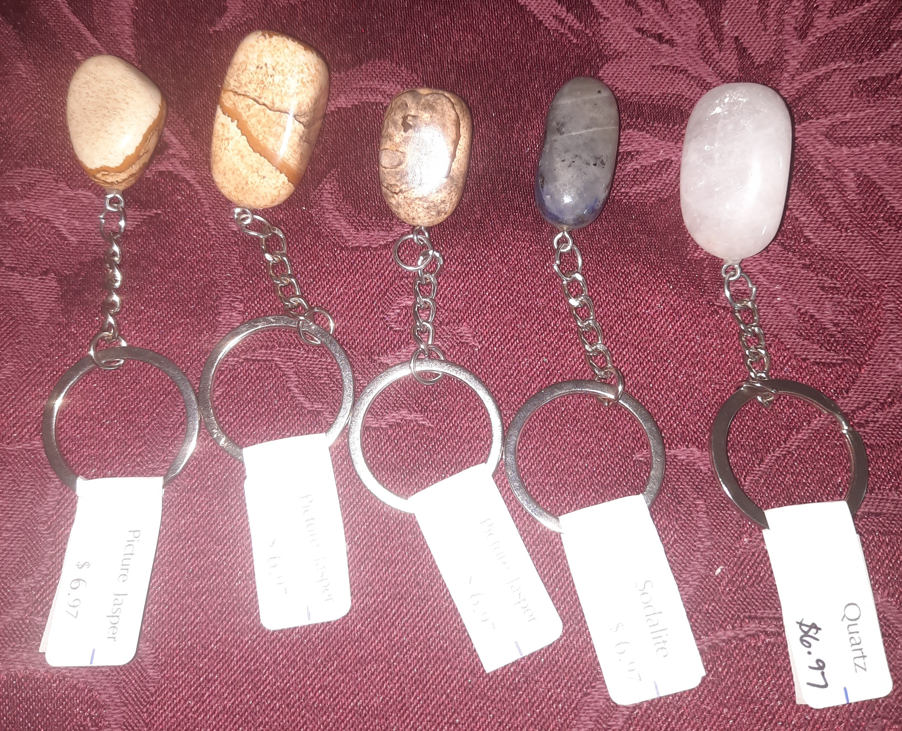 Sturdy flat round key ring with a chunky Tumbled stone.
